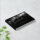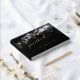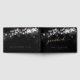 Ein elegantes und raffiniertes Schwarz-Silber-Hochzeitsgast-Gästebuch mit schwarzem Schwarz-Weiß-Leuchten im Hintergrund mit Silberfolie-Swash-Kalligrafie mit Ihren Namen auf der Vorderseite, Wirbelsäule und Rückseite Covers in einem modernen san Serif-Schriftart.