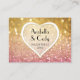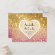 FARBPALETTE: goldfarbene Metallfarbe, rosa DESIGN COLLECTION: Eine passende Tischsitzbank-Platzkarte für feierliche Hochzeiten, Brautpartys oder geschäftliche Veranstaltungen. Entworfen, um die Ticket Stub Corner Style Einladungs-Option, dieses Design wurde mit prächtigen goldenen Blende in goldener Blüte rosa und dann hell rosa schimmernd, Glitzer Look Bokeh Bild. Moderner und trendiger, feminininer, glitzernder Stil, ist diese Einladung Teil eines einfachen und zeitgenössischen Set für Hochzeitsfeiern. Eine halbtransparente, runde Ebene mit weißem Rand hat ein typografisches Schriftart-Typografie-Layout des Textes. Es hat hübsche, süße Pastellfarben und ein mädchenhaftes Gefühl. Cool, angesagt und trendig - die Braut wird für ihre Bridal Dusche Einladung und Thema gefallen.