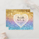 COLOR PALETTE: goldfarbene Metallfarbe, Lavendel, Blau und Aqua DESIGN COLLECTION: Eine passende Platzkarte für Tischsitze für Hochzeitsfeiern, Brautpartys oder geschäftliche Veranstaltungen. Entworfen, um die Ticket Stub Corner Stil Einladungs-Option, dieses Design wurde mit wunderschönen golden verblassen golden und dann hellrosa schimmernd, Glitzer Look Bokeh Bild. Moderner und trendiger, feminininer, glitzernder Stil, ist diese Einladung Teil eines einfachen und zeitgenössischen Set für Hochzeitsfeiern. Eine halbtransparente, runde Ebene mit weißem Rand hat ein typografisches Schriftart-Typografie-Layout des Textes. Es hat hübsche, süße Pastellfarben und ein mädchenhaftes Gefühl. Cool, angesagt und trendig - die Braut wird für ihre Bridal Dusche Einladung und Thema gefallen.