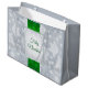 Hier haben wir eine hübsche Geschenktasche, die mit einem grünen Metallband mit Schneeflocken und einem Zierrahmen, der "Feliz Navidad" auf grauem Bukahintergrund sagt, ausgestattet ist. Sie können den Text entfernen oder für Ihren Empfänger anpassen. Diese Tasche passt zu anderen Geschenktaschen, Packpapier, Papiertücher und einer Grußkarte! Es wird eine perfekte Ergänzung zu Ihrem Geschenk für Ihre Freunde und Familie in dieser Ferienzeit.