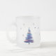 Make a stunning statement with this Bold Abstract Brush Stroke Frosted Glass Mug. The design showcases a vibrant winter tree created with dynamic blue, white, and red brush strokes, topped with a metallic gold star. The elegant gold and blue Snowflakes add a touch of sophisticated shimmer.