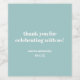 Fügen Sie Ihrer Hochzeitsfeier eine persönliche Touch mit diesen eleganten, individuellen Weinflaschen-Etiketten hinzu. Diese Labels mit sanftem aqua-blauen Hintergrund und modernem weißem Text sind ideal, um den Gästen für ihren besonderen Tag zu danken. Passen Sie mit Namen und einem Hochzeitsdatum auf, um einen schönen Sake zu schaffen, der jede Flasche zu einem nachdenklichen und stilvollen Gefallen macht.