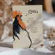 Mit dieser im Jugendstil inspirierten Menükarte, die eine fette Rosterdarstellung enthält, machen Sie eine beeindruckende Aussage. Das Design verbindet einen rustikalen cremefarbenen Hintergrund mit kräftigem Orange und Schwarz und verleiht ihm eine moderne, aber Vintage Ästhetik. Diese Karte eignet sich ideal für Hochzeiten vom Bauernhof zum Tisch, für rustikale Veranstaltungen oder ein einzigartiges kulinarisches Erlebnis. Sie verbindet künstlerischen Flair mit Praxisnähe. Das Menü-Layout ist elegant in einer klassischen Schrift angeordnet, wobei die lebendige Illustration durch einen ausgeklügelten Text abgeglichen wird. Ideal für Paare, die ein rustikales oder skurriles Thema mit einer Touch kühner Kreativität suchen.