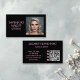 Wow your customers with this business card featuring an elegant typography design in bold black and blush pink plus a photo of your choosing. On the back personalize all your contact information and showcase your social media handles together with a QR code for your bookings or site.