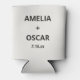 This custom wedding can cooler features a soft ivory background with bold black typography of couple's names and wedding date. Customizable with your names and date. For couples who want a clean, minimalist, bold wedding favor for reception guests.