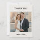 Thank your wedding guests with this modern photo thank you card. White background with bold black "THANK YOU" at top and your wedding photo in the center. Back has a pre-printed message thanking guests for celebrating your day. Customizable with your photo and names. For couples who want a clean, minimalist way to send thanks after the wedding.