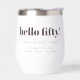 This wine tumbler in brown features bold “Hello Fifty” typography paired with clean, modern lettering for a polished birthday look. Customize the name, date, and celebration details to match a 50th birthday party or milestone gathering. Perfect for serving wine, cocktails, or nonalcoholic drinks during the event and beyond. A timeless keepsake for hosts who love simple design with a modern edge.