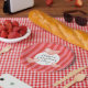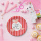 Celebrate love in its sweetest form with this colorful Valentine's Day paper plate featuring a charming bright pink and red striped background accented with soft watercolor hearts. Happy Valentine's Day is written out in a modern script type face. These plates are great for entertaining at Valentine's Day at home, school, work, or social organizations. Plates are available in 2 sizes: shown here in the smaller 7-inch diameter size, they are also available in a 9-inch diameter size.