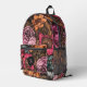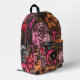 Dieser wunderschöne, stilvolle und Vintage Rucksack mit einem kühnen, dunkelmaximalistischen Blumendesign in Korallen, Orange, Lila, Magenta, Rosa, Aqua und Braun. Eine Textvorlage für Monogramme ist im Lieferumfang enthalten. Verwenden Sie sie, um Ihren Rucksack zu personalisieren oder zu entfernen, falls Sie kein Monogramm bevorzugen. Ideal für Jugendliche, die zur Schule gehen wollen!