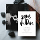 Machen Sie eine Aussage mit unserem kühlen Edgy Modern Black Brush Skript Wedding Save the Date. Dieses Design mit einer auffallenden Schrift aus schwarzem Pinsel vor einem sauberen, minimalistischen Hintergrund ist ideal für Paare, die gewollt haben, ihren einzigartigen, modernen Stil zu präsentieren. Die kühnen, künstlerischen Schriften fügen eine edle Touch hinzu, während das schlichte Layout es elegant und raffiniert behalte. Vollständig anpassbar mit Ihren Hochzeitsdetails und individuellem Foto auf der Rückseite, dies Save the Date stellt sicher, dass Ihr großer Tag auf eine Weise verkündet wird, die so kühl und unvergesslich wie Ihre Liebe ist.