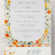 Dieses Design zeichnet sich durch helle Aquarellblumen in lebhaften Gelb-, Orange-, Grün- und aquamarin-Tönen aus. Ideal für Hochzeiten im Frühling und im Sommer.