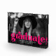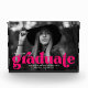 Stilvolle Abschluss-Foto-Block mit dem horizontalen Foto des Absolventen mit "graduate" in fett fuchsia Schrift. Personalisieren Sie den Foto-Block, indem Sie den Namen des Absolventen, das Jahr des Abschlusses und die Schule hinzufügen.