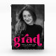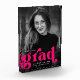 Stilvolle Abschluss-Foto-Block mit dem senkrechten Foto des Absolventen mit "grad" in fett fuchsia Schrift. Personalisieren Sie den Foto-Block, indem Sie den Namen des Absolventen, das Jahr des Abschlusses und die Schule hinzufügen.