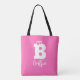 Modern funny hot pink magenta and white monogram and name personalized tote bag featuring a whimsical fun typography. Suitable for teens, young adults, students, or teachers as a birthday or a Christmas gift.