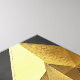 Ein auffallendes geometrisches Gemälde, das die Dreiecke aus Schwarz, Weiß und Gold kombiniert und mit metallischen Texturen besticht. Dieses moderne Kunstwerk verleiht jedem Zimmer eine Touch von Luxus und Eleganz.