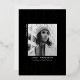 Trendy, moderne Abschluss Dankeschön-Karte mit dem Foto des Absolventen mit "Dank" in fett goldfarbenen Folienschrift und einem schwarzen Hintergrund. Personalisieren Sie die Vorderseite des Foto Abschluss Dankeschön-Karte, indem Sie den Namen des Absolventen, den Schulnamen und Abschluss Jahr. Auf der Rückseite der Dankeschön-Karte steht Platz für Ihre getippte oder handgeschriebene Nachricht mit einem geometrischen Schwarz-Weiß-Muster.