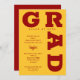 GRAD in fett Kardinal rot Buchstaben Kurven rund um die Kanten dieser gelben goldenen Graduierungsparty Einladungen. PASSENDE Artikel in unserer Sammlung.
