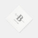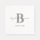 Hochzeitsnapkins mit einem modernen, schönen Kalligraphieskript gepaart mit einem kühlen, dekorativen Monogramm. Passen Sie die Größe des Schriftartes an, wie es für die Namen der Braut und des Bräutigams erforderlich ist. Mit Monogramm Hochzeitsnapkins in Schwarz, Weiß und Grau.