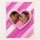 A bold pink heart takes centre stage, outlined in crisp white and set against a lively backdrop of diagonal stripes in soft blush and cream tones.