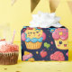 Ein kühnes, farbenreiches Geburtstagsdesign für Kinder und Erwachsene gleichermaßen. Dieses Muster enthält Kuchen, Eis und lustige Charaktere.
