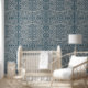 Bold Lines - Symmetrical Tile - Teal and Beige Tapete