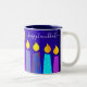 Bold Menorah Candles Happy Hanukkah Skript auf Blu Zweifarbige Tasse
