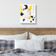 This design features a sophisticated interplay of black, white, and sunshine yellow, utilizing clean lines, bold circles, and crisp geometric shapes. Inspired by mid-century modern aesthetics and the principles of Bauhaus, this piece offers a perfect balance of negative space and dynamic movement.