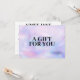 Erleben Sie das Geschenkerlebnis mit unseren individuell gestaltbaren Geschenkgutscheinen. Auf holografischem Hintergrund gefertigt und mit fett- und schwarzem Text verziert, der "Ein Geschenk für Sie" lautet, dienen diese Zertifikate als Leinwand für Ihre persönliche Touch. Passen Sie die Vorderseite mit Ihrer eigenen, herzlichen Botschaft an und machen Sie aus jedem Geschenkgutschein eine wahrhaft einmalige Geste. Aber es hört dort nicht auf. Dreh es um und du findest eine schlanke und berufliche Präsentation. Ihr Name oder Ihr Firmenname wird elegant in fett schwarzer Schrift präsentiert und bildet die Bühne für einen unvergesslichen Geschenksommer. Unterhalb finden Sie bequeme Felder für 'To', 'From' und 'amount', die eine vollständige und berufliche Touch zu Ihrem nachdenklichen Geschenk gewährleisten. Geben Sie das Geschenk der Wahl und machen Sie jeden Anlass mit unseren individuell gestaltbaren Geschenkgutscheinen zu einem besonderen Erlebnis. Ideal für Boutiquen, Online-Shops, Schönheitssalons, Nagelstudios, Haarstylisten und vieles mehr! Beginnen Sie noch heute damit, Ihre Person zu personalisieren! Design von 1201AM Design Studio | www.1201am.com