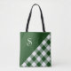 Das fett geometrische Muster zeigt ein Jäger-grünes Dreieck am oberen links mit einem schicken, weißen, benutzerdefinierten Skriptmonogramm und einen diagonal dunkelgrünen und weißen Büffel-Karo unten rechts. Personalisieren Sie es mit Ihrem Initial in der Sidebar. Um das Design Green und White Gingham Muster auf anderen Gegenständen zu sehen, klicken Sie auf den Link "Rocklawn Arts" unten. Digitales Bild. Copyright ©Claire E. Skinner. Alle Rechte vorbehalten.