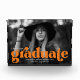 Stilvolle Abschluss-Foto-Block mit dem horizontalen Foto des Absolventen mit "graduate" in fett orange Schrift. Personalisieren Sie den Foto-Block, indem Sie den Namen des Absolventen, das Jahr des Abschlusses und die Schule hinzufügen.