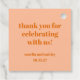 Dank an Ihre Gäste mit diesen eleganten Dankesworten für Tags! Mit einem schicken und minimalistischen Design in weichen Peach Orange mit klassischer weißer Typografie fügen diese Tags Gastgeschenke Hochzeiten, Party Geschenken oder Begrüßungstaschen eine personalisierte Touch hinzu. Sie sind mit den Namen des Paares und dem Hochzeitsdatum individuell anpassbar und sind eine schöne Möglichkeit, den besonderen Tag zu begehen. Ideal für Hochzeiten, Brautpartys oder Jubiläumsfeiern!