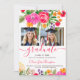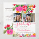 Bold Pink Orange Boho Floral 2-Photo Graduation Einladung