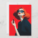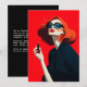 Eine beeindruckende digitale Abbildung einer glamourösen Frau mit fließendem rotem Haar, übergroßen Sonnenbrillen und lebendigen roten Lippen. Sie hält einen Lippenstift mit Zuversicht vor einem fett roten Hintergrund, der Vintagen Hollywood-Charme und zeitlose Eleganz ausstrahlt. Ideal für Mode-Liebhaber, Retro-Kunstliebhaber oder für jeden, der zu schicken, modernen Pop-Kunst gezeichnet hat, mit einer Touch von klassischer Eleganz.