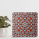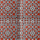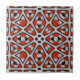 Das Design dieser Keramik Kachel besteht vorwiegend aus symmetrischen Formen, wobei Diamanten und Sterne am auffälligsten sind. Jede Form ist mit komplexen internen Mustern gefüllt, die dem Gesamtdesign eine Ebene der Komplexität hinzufügen. Das Farbschema ist fett und auffallend, die roten Elemente sind in schwarz dargestellt und bilden einen starken Kontrast zum weißen Hintergrund. Graustufen in einigen Formen verleihen dem Design Tiefe und Dimension, wodurch sich seine visuelle Attraktivität erhöht. Das Muster zeigt durch seine symmetrische Anordnung ein Gefühl von Harmonie und Ausgewogenheit. Diese Kombination mit der modernen Farbpalette verleiht der Fliese eine zeitgenössische Ästhetik.