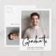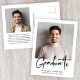 Moderne Postkarte mit Ihrem Foto und "Graduate" in einem stilvollen, fett geschriebenen Abschluss. Fügen Sie den Namen, Schule und Klasse Jahr in einfachen Typografie. Fügen Sie auf der Rückseite eine zusätzliche Foto und eine personalisierte Meldung hinzu, oder verließ Sie leer.