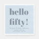 This personalized napkin features a soft icy blue background with a bold “hello fifty” message and custom celebration details. Designed for milestone birthday parties, it works well for cocktail tables, bar setups, and casual seating areas. The cool dusty blue color coordinates easily with modern party décor. A functional detail that helps keep drink areas consistent throughout the celebration.