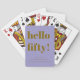This personalized playing card features a soft purple background with a bold “hello fifty” message and custom celebration details. Designed as a party detail or keepsake, it works well for game tables, favors, or casual gatherings during milestone birthday celebrations. The cool color combination coordinates easily with modern party décor. A small detail that adds personality to the celebration.