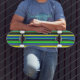 Bold Striped Skateboard - Blue, Lime, and Yellow