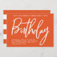 Lebhafte Orange und weiße, feine Streifen Geburtstagsparty Einladung.
