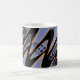 This abstract graffiti-inspired artwork features thick, zigzag brush strokes in deep black with soft peach-toned edges, cutting across a vibrant blue background. Geometric grids and scattered dark circles add layers of texture and rhythm, creating a sense of raw power and modern street art energy. The composition feels bold, edgy, and full of expressive motion.