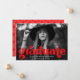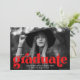 Stilvolle Graduierungsankündigungen mit dem waagerechten Foto des Absolventen mit fett roter Schrift. Personalisieren Sie die Ankündigung des Foto-Abschlusses, indem Sie den Namen des Absolventen, Abschluss Jahr und Schule hinzufügen. Die Ankündigung kehrt zurück, um ein rot-weißes Retrobogenmuster anzuzeigen.