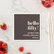 This personalized birthday napkin in brown features bold, modern typography with a playful “Hello Fifty” headline and a clean, minimal layout. The neutral color palette works well for milestone birthday celebrations, cocktail parties, and dinner tables. Customize the name, age, and date to match your event details. A stylish option for celebrating a 50th birthday with a modern look.
