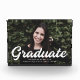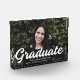 Feiern Sie die Leistung Ihres Absolventen mit einem personalisierten Abschluss Foto-Sake. Im Foto-Block befindet sich das waagerechte Foto des Absolventen mit "Graduate" in einem fett-weißen Schriftsatz. Personalisieren Sie den Abschluss-Foto-Block, indem Sie den Namen, die Schule und den Abschluss des Absolventen hinzufügen.