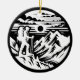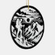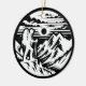 Dieser kühle Schmuck besticht durch eine eindrucksvolle Schwarzweiß-Silhouette eines auf einem Hügel stehenden Wanderers, die in der Hand von Trekkingstöcken liegt und bereit ist, die weite Berglandschaft zu erkunden. Die detaillierte Kulisse zeigt scharfe, zerklüftete Gipfel, hohe Kiefernbäume, einen dramatischen Himmel voller geschichteter Wolken und die Sonne, die ein Gefühl von Abenteuer und Erkundung schafft. Das kreisförmige Design umrahmt die Szene perfekt und macht dieses Ornament zu einer großartigen Wahl für Outdoor-Liebhaber, Naturliebhaber und diejenigen, die minimalistische Kunst mit einer robusten, landschaftlichen Drehung schätzen. Vorderes Design: Silhouette mit Berg- und Himmelselementen in Schwarz/Weiß. Zurück: Schwarz. Ideal für: Abenteurer im Freien, Naturliebhaber und diejenigen, die eine beeindruckende, moderne Dekoration genießen.