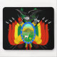 Das Wappen von Bolivien hat einen zentralen Cartouche, der durch bolivianische Flaggen, Musketen umgeben wird, verzweigt sich Lorbeer und hat einen Andenkondor auf die Oberseite.