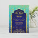 Bollywood oder arabische Nächte Thema Baby Dusche Party Einladung Karte in Aqua und blau ombre mit Goldfolie und Gold Glitzer Effekt Akzente.