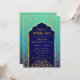 Bollywood oder arabische Nächte Thema Geburtstagsparty Einladungskarte in Aqua und blau ombre mit goldenen Folie Akzente.