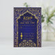 Bollywood oder arabische Nächte Thema Hochzeit RSVP Karte in marineblau ombre mit goldenen Folie Akzente.