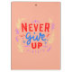 Machen Sie mit diesem lebendigen, motivierend Design eine kühne Aussage! "Niemals aufgeben" ist in Rot und Blau überwältigend gerendert, stehend vor einem warmen, braunen Hintergrund, der Widerstandskraft ausstrahlt. Dekorative Blätter und kleine geometrische Formen bilden einen eleganten Rahmen für die Botschaft und sorgen für eine Touch an Eleganz. Helle lila und gelbe Akzente bringen einen lebendigen Pop von Farben, verstärken die positive Energie und erinnern Sie daran, mit Kraft und Stil behalten. Perfekt für diejenigen, die eine tägliche Ermutigung brauchen, inspiriere dieses Design Vertrauen und Entschlossenheit!