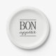 Set von Papier Party Teller mit schwarz-weiß BON APPETIT Typografie zitieren Kunst Text drucken Dekoration. Matching Geschirr und Party Accessoires erhältlich.
